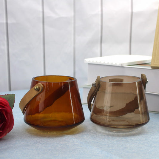 Wholesale Transparent Glass Hydroponic Flower Vase Brown Hand Blown Round Glass Handbag Vase